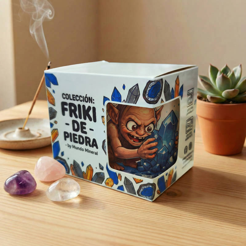 Esta taza de la colección Friki de Piedra captura esa esencia primitiva de protección. Con un diseño que parodia al guardián de tesoros más famoso de la fantasía, esta taza deja claro que tu colección no es pública: es TU mineral. Es TU tesoro.